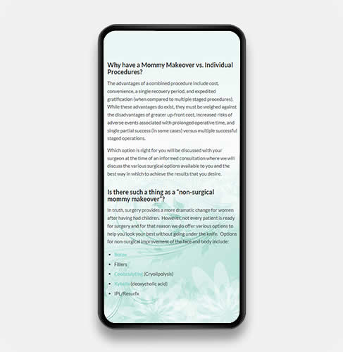 Webacom crafted a new brand identity for Best Mommy Makeovers, including a logo, tagline, and messaging that speaks directly to mothers. We designed and developed a modern and inviting WordPress website that showcases their specialized procedures, patient testimonials, and educational resources.