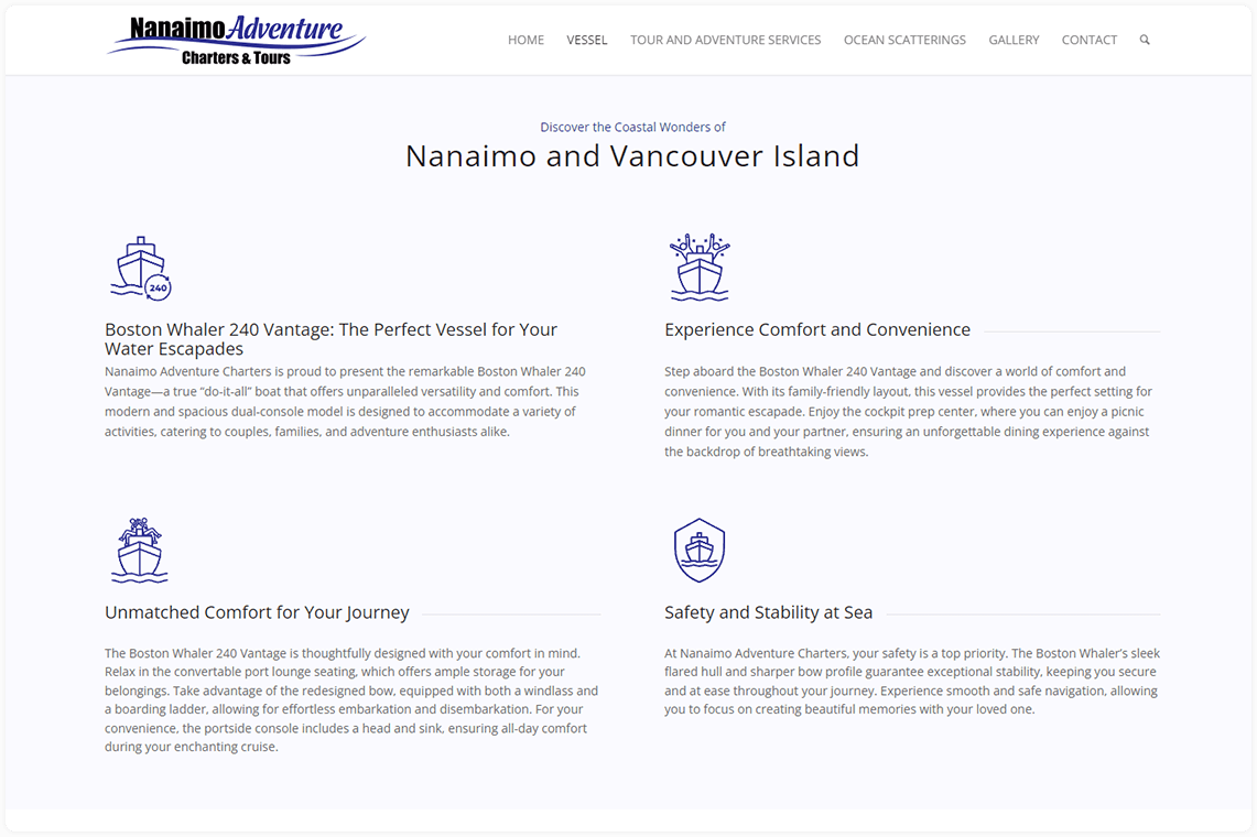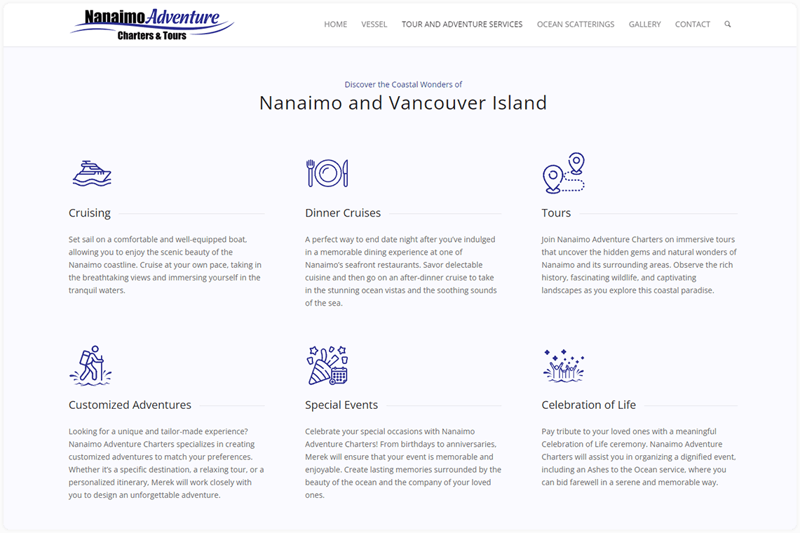 - Since the launch of their new website and SEO campaign, Nanaimo Adventure Charters has experienced a 287% increase in website traffic.