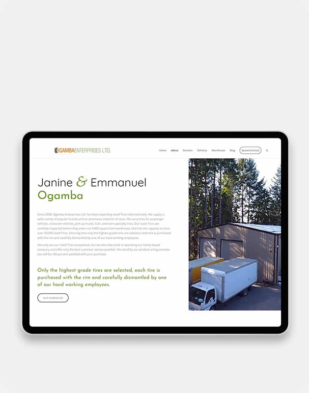 Webacom designed and developed a comprehensive WordPress website that presents Ogamba Enterprises’ extensive selection of used tires, detailing their quality, specifications, and availability. The website features an easy-to-use inquiry system, enabling potential buyers from around the world to connect with the company and request quotes.