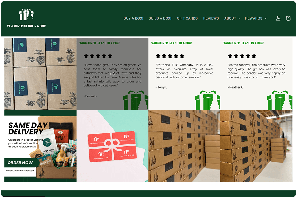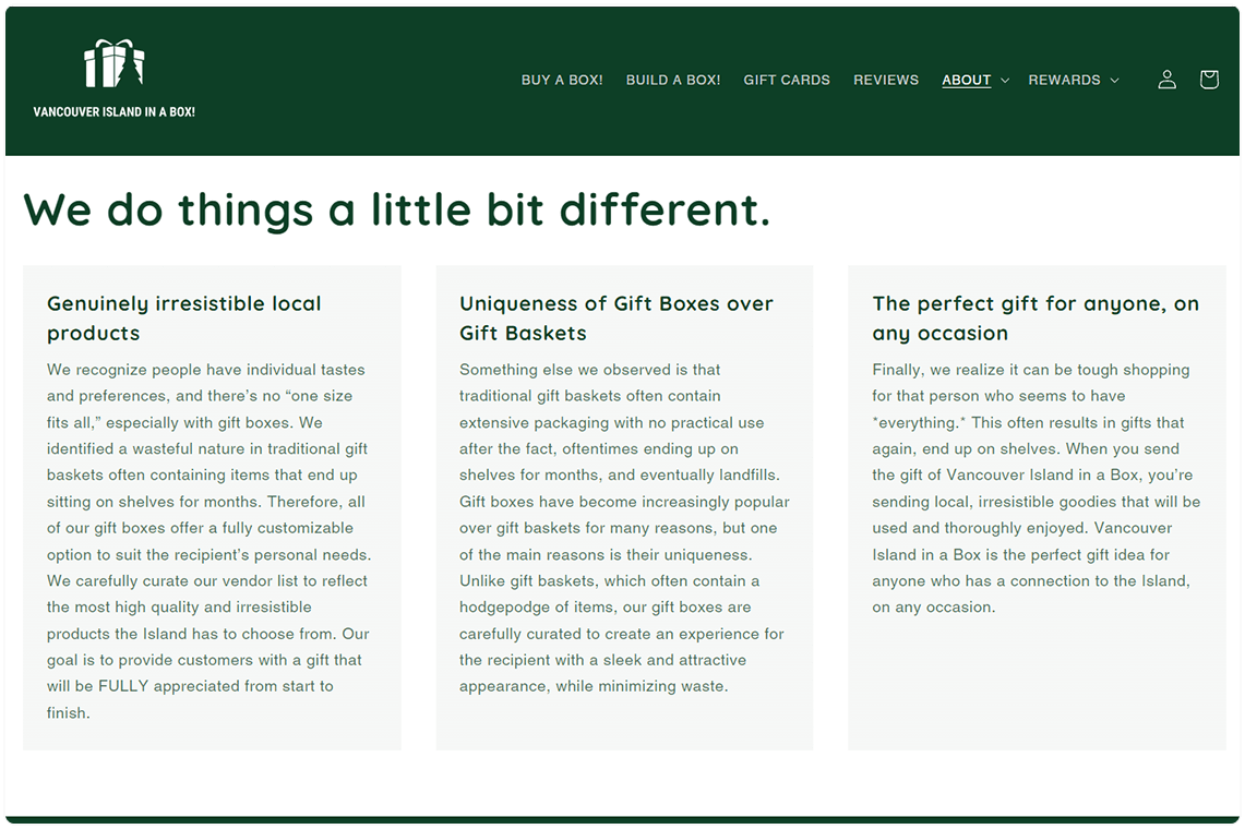 - Vancouver Island in a Box has achieved top Google rankings for their target keywords, including “Vancouver Island gift boxes” and “gift boxes from Vancouver Island.”