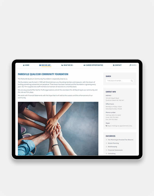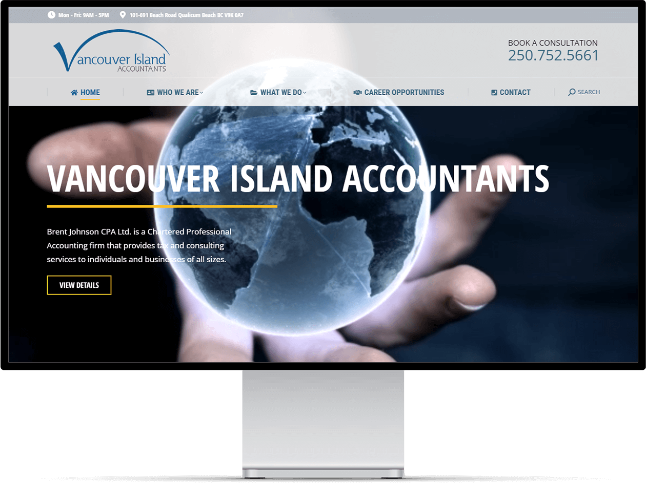VI Accountants, led by Brent Johnson CPA Ltd., offers a comprehensive range of accounting and financial services to businesses on Vancouver Island. Recognizing the importance of a strong online presence in today’s digital age, they partnered with Webacom to revitalize their brand and website.